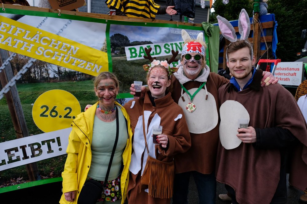 Natürlich waren wir Erkrather GRÜNEN an beiden Tagen wieder mit einem liebevoll gestalteten Wagen dabei, der diesmal ganz im Zeichen des Erhalts der Hasenwiese und des bevorstehenden Bürgerentscheids am 26. Februar stand.