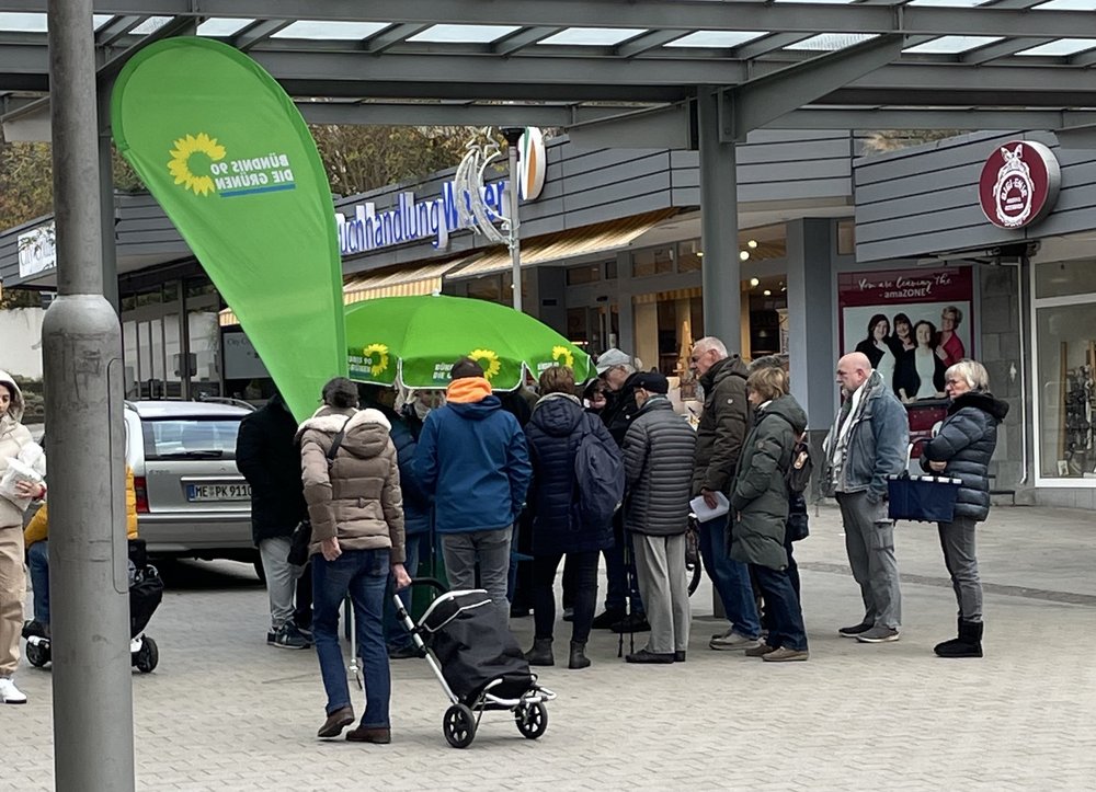 Zahlreiche Bürgerinnen und Bürger informierten sich beim GRÜNEN Infostand zum Thema Fernwärmepreise und Übernahme der Fernwärme durch die Stadtwerke Erkrath.