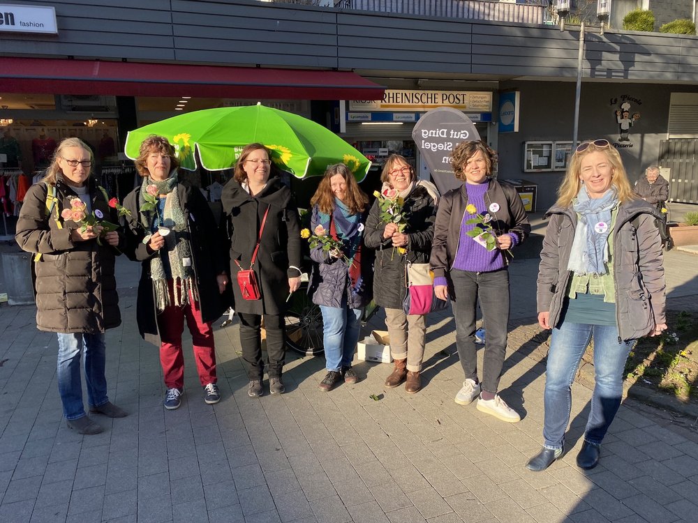Die GRÜNEN Frauen in Erkrath haben am Weltfrauentag ein Zeichen für die Gleichberechtigung von Frauen weltweit gesetzt – sie verschenkten auf dem Hochdahler Markt fair gehandelte Rosen und informierten dabei über Produktion und Handel, Arbeitsbedingungen und Kosten.