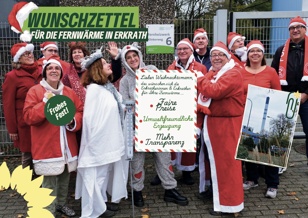 Auch 2025 werden wir uns für eine soziale und ökologische Politik einsetzen und hoffen dafür auf Ihre Unterstützung. Das möchten wir mit unserem diesjährigen Weihnachts- und Neujahrsgruß, den wir der Diskussion um die Fernwärme gewidmet haben, zum Ausdruck bringen. Die Umstellung der Fernwärmeversorgung weg vom Erdgas und hin zu erneuerbaren Energien ist mit einer Einsparung von ca. 8 Prozent des CO2-Ausstoßes die weitaus größte Einzelmaßnahme, um auch in unserer Stadt einen Beitrag zur Minderung der Klimakatastrophe zu leisten und gleichzeitig für faire Preise zu sorgen.